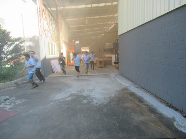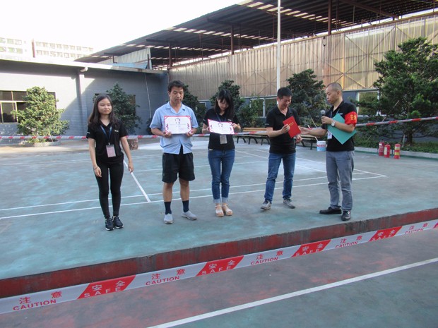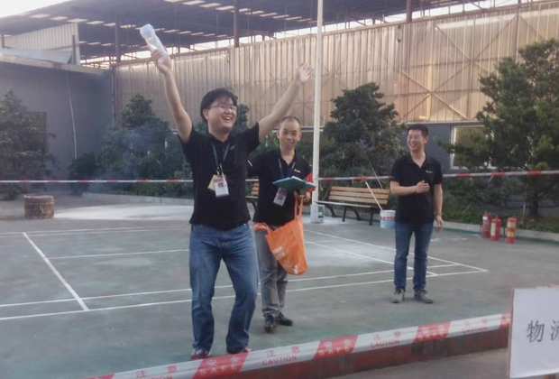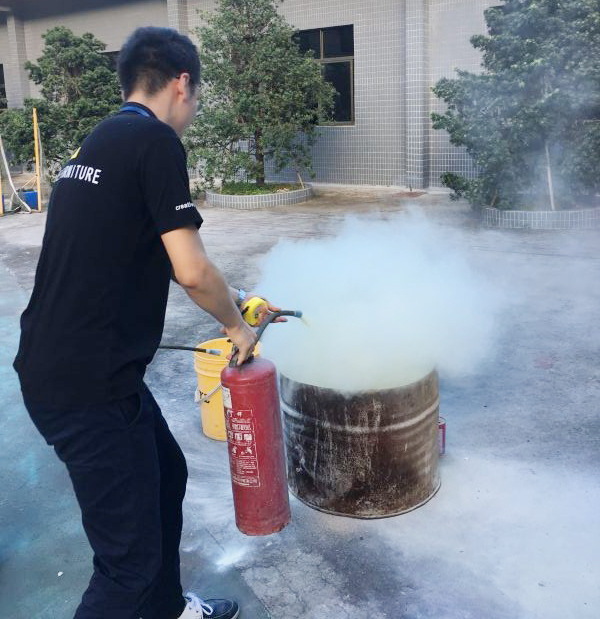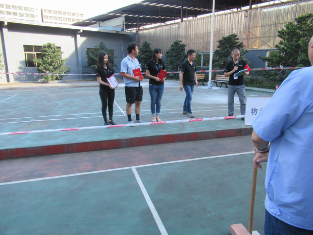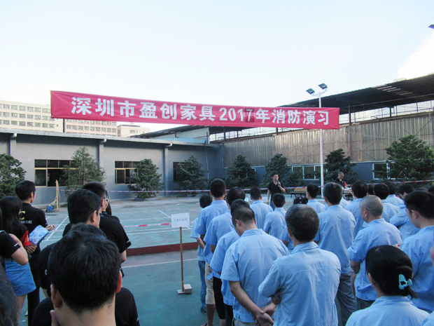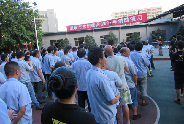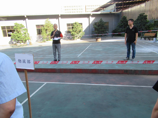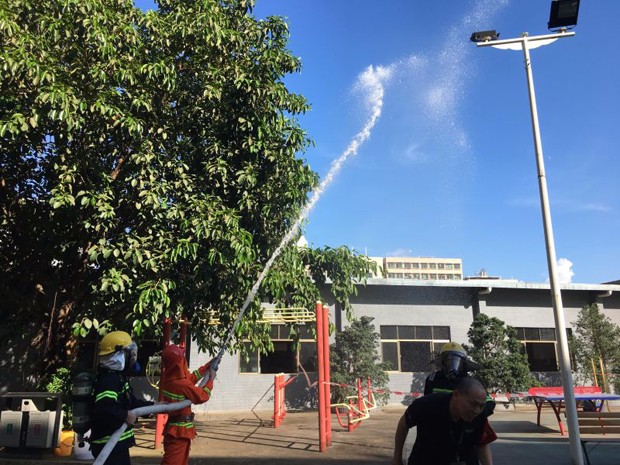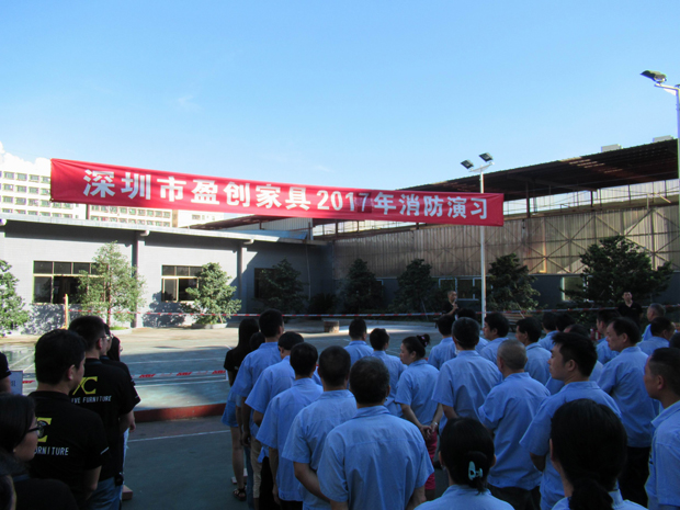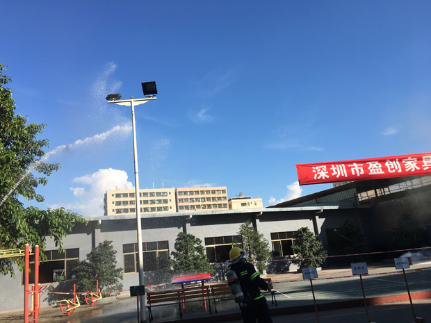 在2017年6月29日17:00分,總指揮下達(dá)了演練開(kāi)始,木工車間吸塵塔粉塵未及時(shí)清理產(chǎn)生火情,事故現(xiàn)場(chǎng)人員立即組成報(bào)警組發(fā)出火警報(bào)警信號(hào)。各演練工作組在聽(tīng)到指令后,迅速到位,參加演練的義務(wù)消防員和工作人員全部佩戴消防演習(xí)紅袖章,疏散組在最短的時(shí)間內(nèi),于車間內(nèi)、樓梯間及安全出口處,通過(guò)口令加手勢(shì),指揮員工從指定路線進(jìn)行有秩序地疏散;把現(xiàn)場(chǎng)所有人員,快捷有序地疏散到安全地帶(公司宿舍前籃球場(chǎng));滅火救援組第一組人員在一分鐘到達(dá)現(xiàn)場(chǎng)使用滅火器、消防栓進(jìn)行滅火,滅火二組在3分鐘內(nèi)穿著裝,佩戴空氣呼吸器到達(dá)現(xiàn)場(chǎng)進(jìn)行現(xiàn)場(chǎng)搜救及滅火救援;通訊警戒組按照人員分工,確保通訊、警戒、引導(dǎo)消防車輛、阻止無(wú)關(guān)人員進(jìn)入火場(chǎng),確保了救援行動(dòng)的正常進(jìn)行;救護(hù)保障組準(zhǔn)備了救護(hù)器材,對(duì)受傷人員及時(shí)救護(hù)及后勤保障。