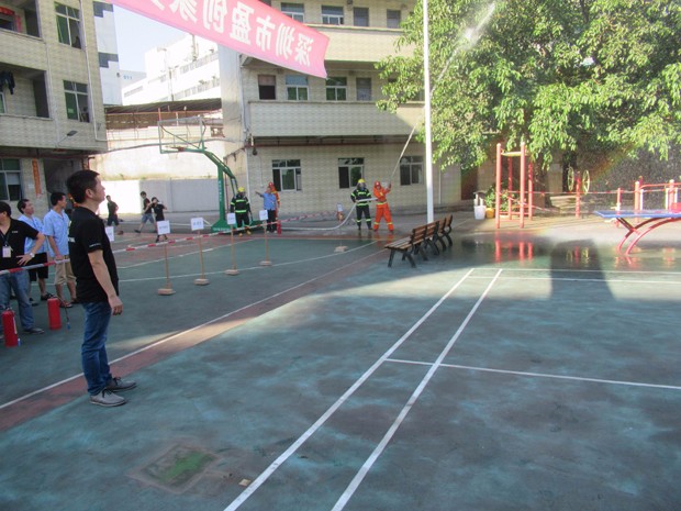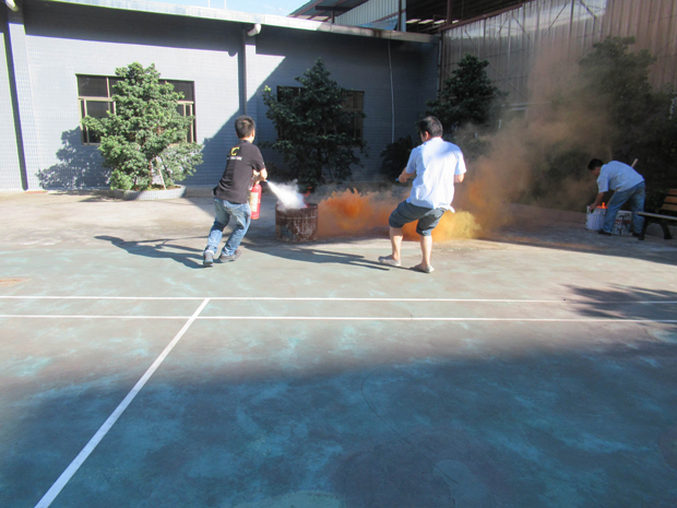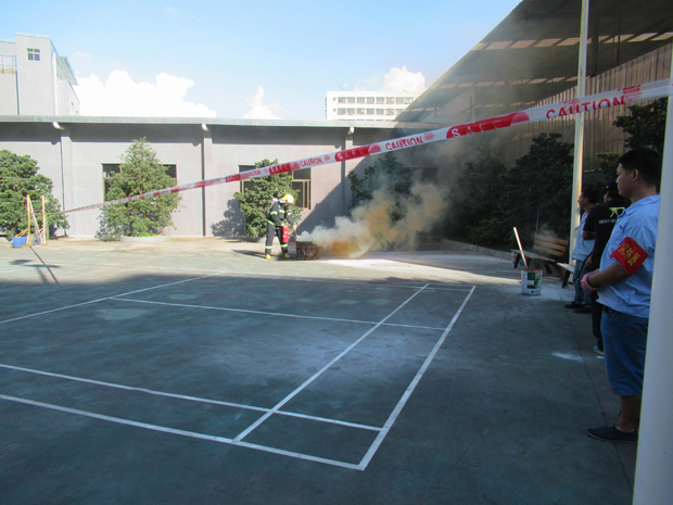 消防演練按照預(yù)定的方案,有序、緊張地進(jìn)行。整體疏散到位后,各部門人員在公司宿舍前的籃球場(chǎng)集合,進(jìn)行了人員的清點(diǎn)統(tǒng)計(jì)。隨后,保安隊(duì)長(zhǎng)李文明指導(dǎo)保安隊(duì)員和義務(wù)消防員,演練用干粉滅火器進(jìn)行現(xiàn)場(chǎng)滅火。